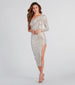 Sequin dresses make sure every eye will be on your dazzling aurora and the Malika formal midi dress is no exception! She features a chic one-shoulder neckline adorned with a fitted long sleeve, an asymmetrical pleated accent, and a form-hugging silhouette revealing a sexy side slit design. The formal midi-length dress is crafted from a sequin embellished lined fabric that brings the sparkle. Complete the look with earrings and heels for a holiday party!