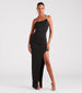 Rhinestone adds a glamorous shine and shimmer to the Maylene formal dress perfect for weddings or a dressy celebration! She features a sleeveless one-shoulder neckline, a gorgeous rhinestone-embellished knotted shoulder strap, a form-hugging slim silhouette, and a flattering high side slit and long hem. The formal dress is crafted from a double-lined slinky knit fabric with moderate stretch. Complete the look with a rhinestone bracelet and clutch.