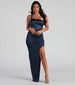 Make a mesmerizing impression with a formal dress that creates a head-turning moment! Melody features a one-shoulder neckline, a double-row of asymmetrical spaghetti straps, and an A-line silhouette with an ultra-high side slit. The dress is composed of a lined satin fabric that offers a form hugging fit with a moderate stretch. Complete look with high heels and a rhinestone clutch.Â