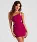 Walk into the club in this mesh mini-dress and watch every head turn! It features a sleeveless, one-shoulder neckline with dual adjustable spaghetti straps, a side cutout with a drawstring so you can customize the look and a form-hugging silhouette. Style with fringe earrings and heels.