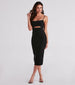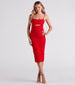 Simply chic, the Mia formal midi dress is a must-have style for cocktail parties or as a guest at weddings! She features a sleeveless square neckline, spaghetti straps, an alluring small cutout under the bust, a midi-length hem with a fab back slit accent, and a form-hugging silhouette. Complete the look with strappy stilettos.