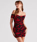 You in this floral mesh dress to meet them at midnight! Mesmerize in this off-the-shoulder mini dress featuring a sweetheart neck, short-sleeve cuffs, a padded bust, and side ruched seams that accentuate your curves along the bodycon silhouette. Complete the look in strappy lace-up heels.