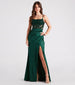 Ready to swoon an entire room? The Mikayla formal long dress will do just that at banquet dinners, ceremonies, and school dances! She features a sleeveless square neckline, adjustable spaghetti straps, a padded bust, and a delicate lace embroidered corset bodice with sequins for a hint of sparkle and flexible boning. Her side pleated hip seam creates the flattering asymmetrical-style mermaid silhouette with a stunning front slit along the floor-length hem. The formal maxi dress is composed of a silky satin-lined fabric with minimal stretch. Style with statement earrings and a clutch to complete the look!