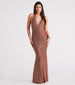 Showcase a gorgeous allure in the sultry Miriam rhinestone mermaid long dress! She features a plunging V-neckline with halter straps, a bold open back, a high waist, a floor-length hem with a curve-hugging mermaid silhouette, and glimmering rhinestone embellishments in an intricate geometric design. The semi-sheer knit fabric features a mini-length lining. Style with platform heels for your next fancy party.