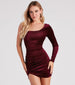 This glitter velvet dress shows all of your good sides! It features a one-shoulder neckline, a single long sleeve, and a ruched side seam accentuating your curves along the form-hugging, short-length hem. Complete the look with a clutch purse for a semi-formal event.