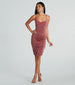 Ultra-flattering and soft, this sleeveless midi dress will be your main chic style! The knee-length dress is designed with a classic V-neckline, spaghetti straps, side ruched seams, and a bodycon silhouette that shows off your curves on smooth-lined knit fabric. Complete the look with stiletto heels for a birthday brunch or bridal shower!