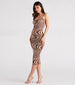 Make heads turn in this on-trend sweater dress to show off your new spring style! It features a sleeveless square neck, adjustable spaghetti straps, a bodycon silhouette, and a midi-length hem on swirl print knit fabric. Complete the look in sandals for a backyard party!