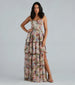 Soft and sweet floral makes the Natalie formal chiffon long dress a beautiful style for bridesmaids, wedding guests, or formal parties! She features a sleeveless sweetheart neckline with a flirty ruffle trim, underwire bust support, adjustable spaghetti straps, and a delicate lace-up strappy back design. The formal maxi dress is designed with a flattering A-line silhouette decorated with tiered ruffles and a sultry high front slit to show some leg along the floor-length hem. She's composed of an airy chiffon fabric showcasing a blooming floral print and has a stretchy knit lining. Complete the look with sleek strappy block heels and earrings.