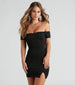 Leave your worries behind cause you'll be looking and feeling so sultry in this little black dress at the party! It features an off-the-shoulder neckline, non-slip grip lining, a lightly padded bust, a bodycon silhouette, and a mini-length hem with a slit accent. Complete the look with a statement clutch.