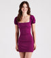 Create an oh-so-sweet look in this darling puff sleeve mini dress! It features a square neckline, short puff sleeves, an open-back design with bar straps, a mini-length hem, and a form-hugging fit for a figure-flattering silhouette. The crepe fabric offers a moderate stretch. Style with clear heels for a dinner date.