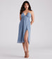 You'll be on the verge of a stylish breakthrough with the addition of this chiffon midi dress to your fashion closet! Effortless and breezy, this dress features a sleeveless v-neckline, halter spaghetti straps, a lace-up open back that lets you customize the fit, and an asymmetrical hem with a flirty slit. Complete the look with stiletto heels and a bracelet!Â