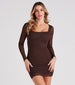 This glitter mini dress will inspire your next look for a party! It features sheer long sleeves, a square neck, and a bodycon silhouette. Style with strappy block heels to complete the look.