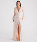 Gorgeous and glitzy, the Piper sequin formal dress will radiate stylish glamour! She features a V-neckline with a pleated wrap-front design, long bishop sleeves, a high waist seam, a floor-sweeping hem with a chic high front slit, and a slim-fit silhouette. The all-over iridescent sequin embroidery will shimmer all night long. Complete your look for a fancy gala with rhinestone fringe earrings.