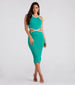 Feeling playful? Turn up the charm in this sleeveless sweater midi dress perfect for family parties or baby showers! It features a halter neckline, skin-baring cutout sides and back, and a form-hugging fit on stretchy rib knit fabric with contrast trim. Complete the look in block heel mules.