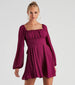Play up your flirty side in this adorable chiffon skater dress featuring sheer peasant sleeves, a square neckline, an open-back with tie closure, and a short-length hem. Complete the look in platform heels for a dressy event!