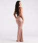 Bring the sultry chic shine to your next formal occasion in the Presley foiled metallic mermaid dress! She features a sleeveless cowl neckline with ruched detailing, tie-shoulder spaghetti straps that cascade down, a bold open back, a hip-hugging fit, and a floor-length hem with a mermaid silhouette. The knit fabric features an alluring all-over foiled metallic shine for an eye-catching vibe. Style with rhinestone statement earrings.