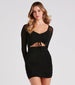 Look and feel so radiant in this rhinestone mesh mini dress for a night of endless sparkle! The dress features sheer long fitted sleeves, a V-neckline with a center front drawstring bust atop a cutout bodice, side ruched seams, and a bodycon silhouette. Style with fringe earrings for a club night!