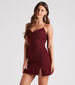 Radiant the room in this glitter mini dress to sparkle at holiday parties and celebrations! The dress features a sleeveless v-neckline, bungee spaghetti straps, a bodycon silhouette, and a side seam that leads to a flirty slit accent. Complete the look with a chic clutch and heels!
