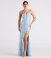 Glistening sequins dance across the Raquel formal dress to make a stunning appearance at dances, weddings, and banquets! She features a sleeveless sweetheart neckline, spaghetti straps that lace up on the back, a built-in padded bust with underwire, and a form-hugging mermaid silhouette with a sultry front slit and floor-length hem. The formal dress is composed of a sequin-embroidered mesh fabric with a stretchy knit lining. Style with a collar necklace and heels to complete the look!