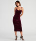 Turn heads in the glamorous Rhonda formal velvet dress for your next holiday party or celebration! She stuns in a sleeveless V-neckline, spaghetti straps, padded cups, and side ruched seams to accentuate your curves along her form-fitting, midi-length hem. The formal dress is composed of luxurious velvet fabric. Complete your dressy look in lattice cutout booties and earrings!