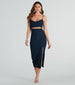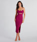 The Robyn formal glitter midi dress is perfect for making a chic statement and sophisticated style! Beautifully appointed with a cowl neckline, spaghetti straps, and a cutout bodice, this bodycon midi dress is an elegant choice for any special occasion. The glitter-lined fabric provides a touch of luxe, and the front slit details add a flirty allure along her midi-length hem. Complete the look with earrings for a banquet or cocktail party.