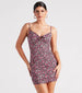 Romance yourself! Look sweet in this rose print casual dress on a day date or brunch. It features a sleeveless sweetheart neck, spaghetti straps, bust tie-front, and keyhole, side ruched seams to accentuate your figure along the mini, bodycon silhouette. Style with a denim jacket to complete the look!