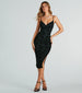 Strike a wow-worthy impression in this floral mesh velvet midi dress for an effortlessly romantic look! Boasting a surplice V-neckline, adjustable spaghetti straps, and side ruched seams, this bodycon midi dress is sure to please at parties. Flocked floral velvet adds a luxurious touch to the midi-length hem with a side slit for a graceful finish. Complete the look in strappy block heels.