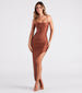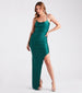 Put your best silhouette forward in the Rosa formal dress made to flaunt what you got! Perfect for banquets or dressy cocktail parties. She features a sleeveless square neckline, spaghetti straps that crisscross in the back, a bodycon silhouette, and a side ruched seam atop a sexy high slit and long hem. The formal dress is composed of a slinky knit fabric with a sheen effect and moderate stretch. Complete the look with a layered necklace.