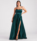 Make a grand entrance at your next fancy affair in the gorgeous and chic Rylan satin formal dress! She features a sleeveless square neckline with a built-in padded bust, adjustable spaghetti straps, an open back with a strappy lace-up design, a fitted high waist, a floor-sweeping hem with a high side slit, and a flowy A-line silhouette. The smooth satin woven fabric includes a full-length woven lining. Complete the look with rhinestone statement earrings.