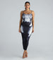 See through the ordinary and showcase your unique style! This graphic maxi dress features a scoop neckline, adjustable spaghetti straps, an X-ray graphic bust and front design, a flattering bodycon silhouette, and a back slit on smooth knit fabric. Complete the look in a sassy crop denim jacket for day or night plans!