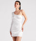 Seriously cute for every semi-formal event this season! Slay in this satin mini dress featuring a one-shoulder neckline, a single long fitted sleeve, bodycon fit, asymmetrical hem, and a back cutout with a lower ruched seam to flaunt your curves. Complete the look with sleek hoop earrings.