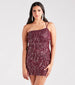 Shake it up on girl's night in this flirty sequin mini dress sure to capture all the attention! The short mini dress features a sleeveless one-shoulder neckline, dual adjustable spaghetti straps, and a bodycon silhouette showcasing an all-over fringe on lined mesh fabric. Complete the look in stiletto heels.