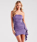 Shake 'n' shimmer at the club in this glitter party dress made to sparkle all night! It features a strapless neckline with non-slip grip lining, a flattering all-over ruching effect, a side ruffled sash, and a bodycon silhouette and mini-length hem. Complete the look with dazzling jewelry and heels to add extra shine to your style!