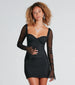 You'll be totally sure of yourself in this mini dress for parties and girl's nights! It features sheer ruched long bell sleeves, a sweetheart neckline, a built-in padded underwire bust, and a flattering bodycon silhouette. Complete the look in high heels.