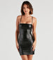 You'll be irresistible in this PU mini dress showcasing an edgy and sleek design that flaunts your curves! It features a sleeveless square neck and spaghetti straps that lead to the lace-up open-back with tie closure, a high waist seam, and a bodycon fit. Complete your club look in heels.