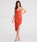 With your shining personality, this glitter midi dress brings out your inner glow! Shimmer into every party in this sleeveless dress featuring a V-neck, spaghetti straps, a side ruched seam that accentuates your curves, a bodycon silhouette, and a trendy asymmetrical hem with a side slit. Complete the look in platform heels.