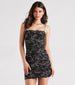 Show your artsy-chic side in this mesh mini dress perfect for a movie date or casual plans with friends! It features a sleeveless square neck, sleek bungee spaghetti straps, side ruched seams to accentuate your curves, and a bodycon silhouette. The dress is designed with an abstract face print on mesh fabric with a stretchy knit lining. Complete the look in a trendy crop jacket and sandals.