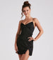 The simple chic style of this satin mini dress is perf for the babe who loves a classic look. It features a sleeveless V-neckline, bungee spaghetti straps, a fitted A-line silhouette, and a mini-length hem with an alluring front slit. The lightweight satin-knit fabric offers a moderate stretch. Complete the outfit with strappy heels.