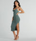 Simple and statement-making! This rib knit midi dress offers any fashionista a stylish adventure. With a flattering sweetheart neckline, twisted bust, and bodycon silhouette that puts your curves on display, you'll feel confident and flirty! The midi-length hem and side slit add a touch of sultry to this simple yet stunning dress. Perfect for casual weekend plans or a date night, style this dress with chic sandals and a necklace.