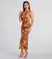 Take your look to the next level with this gorgeous floral midi dress. With its cowl neckline, adjustable spaghetti straps, A-line silhouette, and a painted floral print on woven fabric, this midi-length dress will make you feel stylish and fine! Complete the look in sleek stiletto heels for a semi-formal soiree.