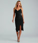 Simply stylish, this wrap-front midi dress is a chic choice for cocktail hour. It features a sleeveless V-neckline with a wrap-front design, spaghetti straps, pleated detailing at the waist, a wrap-front skirt with an asymmetric midi-length hem, and a slim-fit silhouette. The lined crepe fabric offers a moderate stretch. Complete your look with lace-up heels.