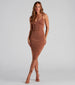 Serve up a single scoop of you in this sultry midi dress for cocktail hour! It features a sleek, sleeveless, scoop neck, spaghetti straps, bodycon silhouette, and a strappy open back. Complete the look in glitzy earrings.