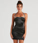 Show off a sleek sparkle in this silky satin mini dress. It features a sleeveless sweetheart neckline with a chic sequin embroidered trim at the bust, thin halter straps with sequin embroidery, and a short, curve-hugging silhouette. The smooth satin-knit fabric offers a moderate stretch. Style with rhinestone heels for a night out at the club.