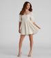 So effortless and chic, this airy chiffon skater dress is perf for weekend outings. It features a square neckline, half-length puff sleeves with ruffled hems, a fitted high waist, and a mini-length skater skirt with an A-line silhouette. The lined chiffon fabric features an all-over floral burnout pattern for a pretty vibe. Style with hoop earrings.