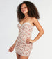 This floral lace-trim woven mini dress will give you such a sweet look for the spring season! The lightweight smooth woven fabric is accented with a romantic floral print pattern for a gorgeous look, and the sleeveless sweetheart neckline features a sheer floral lace trim for a pretty touch. The mini-length dress has padded cups with structured underwire and adjustable spaghetti straps for a customized fit. The fitted silhouette adds some allure to the adorable dress. Style with block heels for a bridal shower!