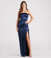 This figure-skimming beauty is worthy of a grand debut at banquets, weddings, and dressy celebration parties! The Sofie formal dress features a foldover, strapless neckline, a lightly padded bust, a slim curve-hugging silhouette, and a sultry front slit along her floor-length hem. The formal dress is composed of lined satin fabric with a sheen effect and minimal stretch. Complete the look in statement mules and a clutch.