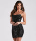 You'll be sparking in this sequin mini dress all night long! It features a sleeveless square neck, spaghetti straps, a bodycon silhouette, and a sexy open back with lattice straps. The lined mesh fabric features an all-over sequin scroll embroidered pattern. Style with platform block heels to complete your dressy look!