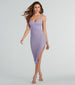 Show up looking like a sparkling icon in this glitter midi dress entering celebration dinners or parties! Designed with a flattering V-neckline and dual spaghetti straps, it hugs your curves in a bodycon silhouette. The lace-up back adds a touch of sophistication, while the side slit and midi-length hem create a glamorous and modern look you'll adore! Complete the look with a clutch and rhinestone block heels for extra shimmer with every step.