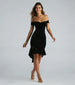 Elevate your evening look in this stunning velvet midi dress! Boasting an alluring off-the-shoulder neckline, the knee-length dress features short-sleeve cuffs, a non-slip grip lining, a form-hugging fit, and a ruffled midi-length hem, this velvet dress exudes elegance. Complete the look in high heels for a semi-formal party!