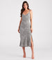 You can be spotted all season in this leopard print midi dress perfect for a casual lunch or a wine night with friends! It features a sleeveless V-neckline, tank shoulder straps, and a form-hugging, slim silhouette with a flowy slit hem. Complete the look in sleek statement hoop earrings and sandals.